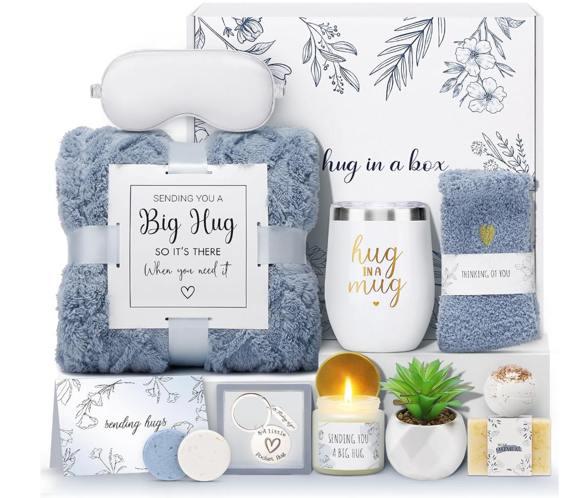 • Ready to Gift with Elegant Presentation: This gift box for women arrives beautifully arranged with a heartfelt greeting card, no additional wrapping needed, each detail from blanket to the bath products is selected to provide comfort, encouragement, support, and emotional well-being, perfect as a bereavement gift, get well soon gift, thinking of you gift, self care gifts, sympathy gift , remembrance gifts, grief gifts, making it a meaningful hug in a box that shows you care even from a distance