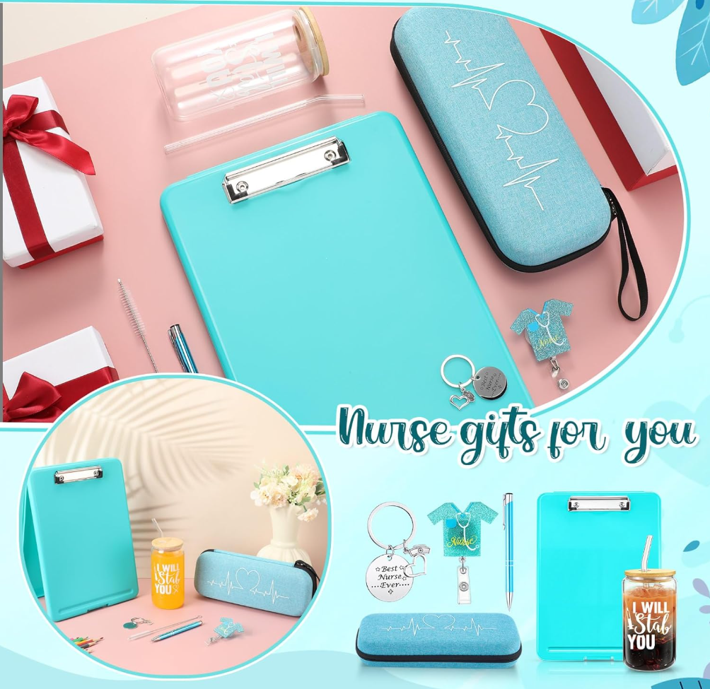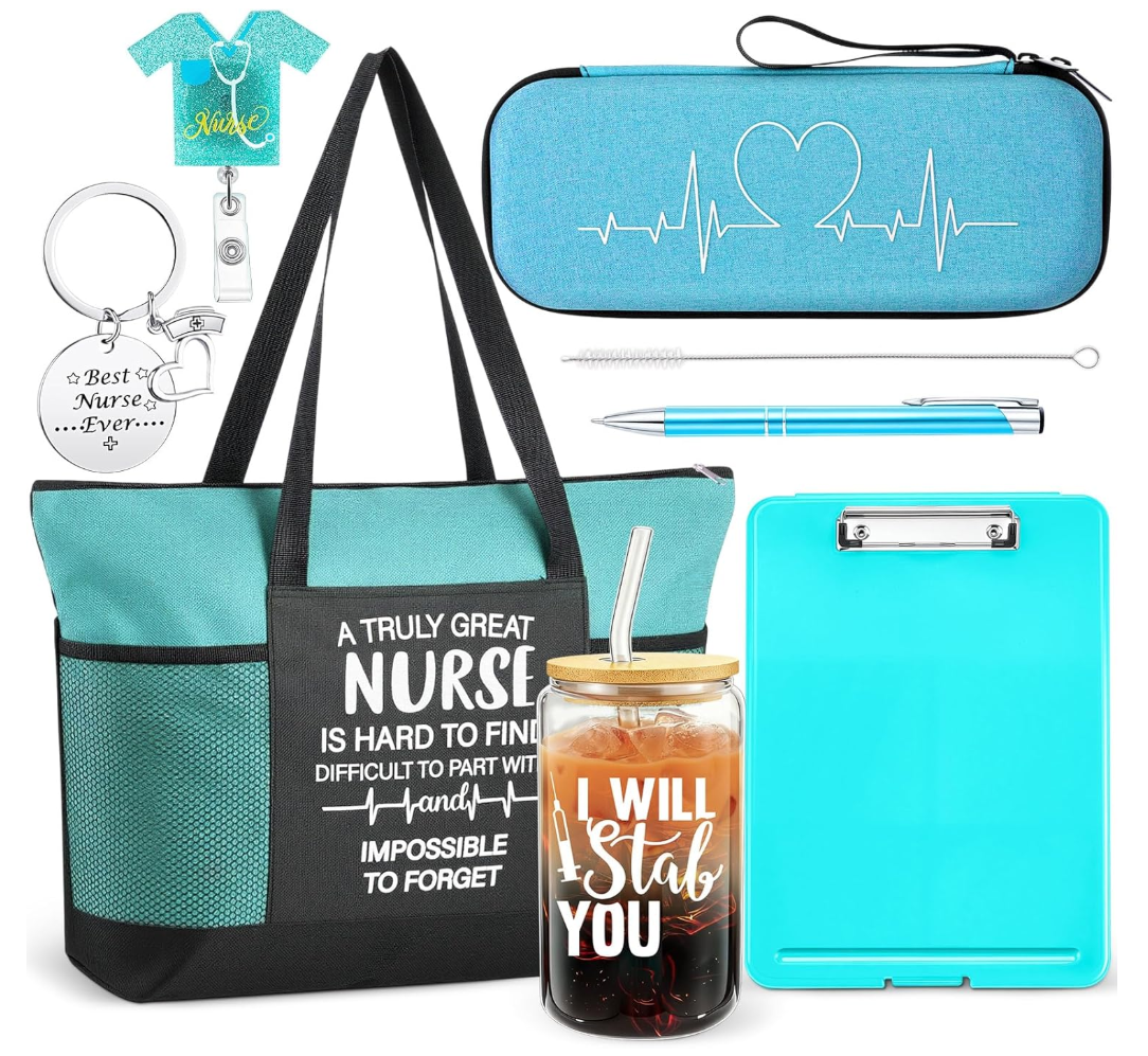 - Product Contents: this nurse gifts set includes a 16 oz glass coffee mug with straw and brush, a nurse tote bag, a stethoscope case, a nurse clipboard, a badge scroll, a nurse pen, and a nurse keychain; Every nurse will love this gift set; This gift set is practical and easy to carry to work